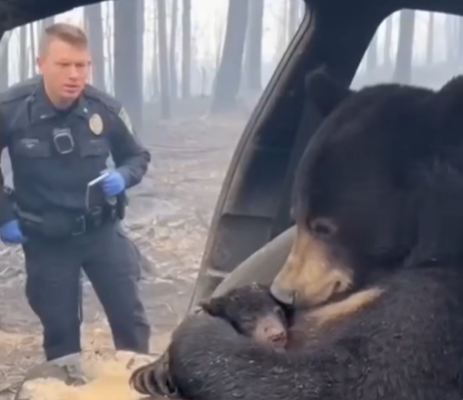 Following the sound, Ruiz found a burned car. Inside, a scorched mother bear cradled her cub’s lifeless body. She wasn’t aggressive—only grieving. Her eyes met his, tired and pleading, refusing to leave her child behind.