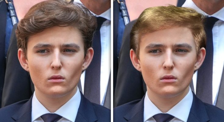 Barron’s hair didn’t fade to blonde — it strengthened toward brown.